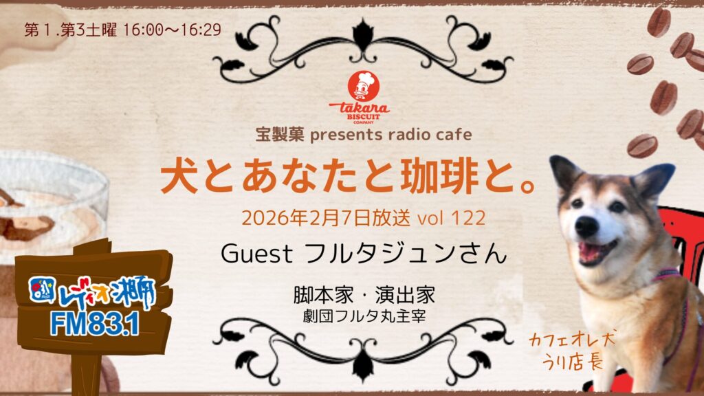 宝製菓presents radio café『犬とあなたと珈琲と。』FM83.1MHz レディオ湘南(第1.第3土曜 16:00~16:29)放送