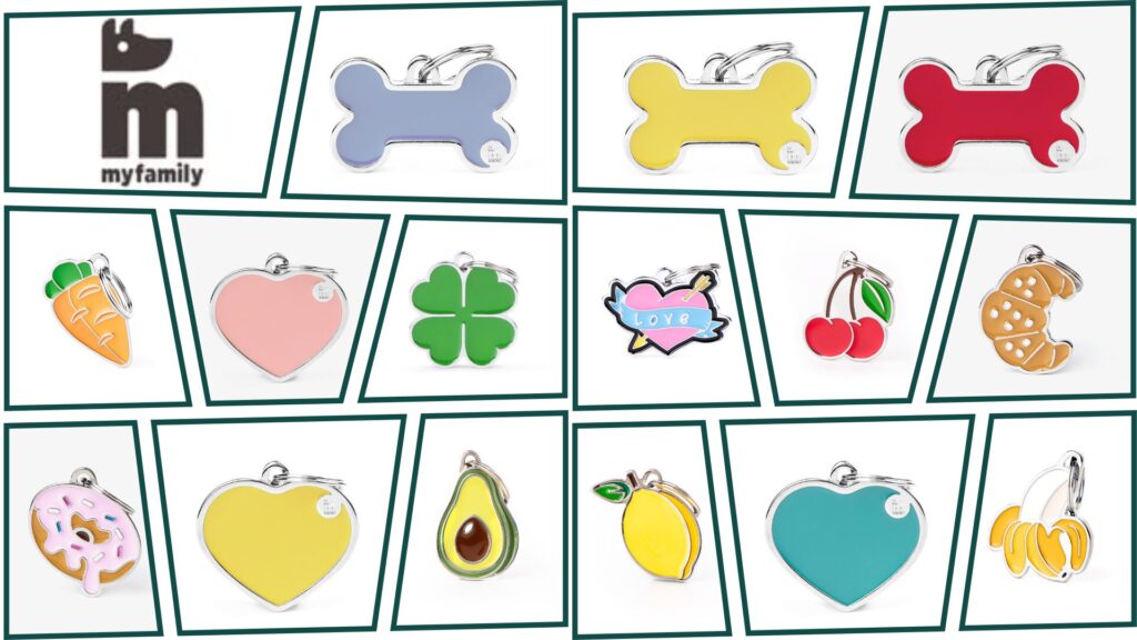 ――私も『イヌと暮らす』で買ったんですけども、イタリアの金具職人さんの手作りのタグに刻印器で文字が彫刻できるので、その場ですぐ仕上がるのも魅力ですよね。うるるも「かわいいの着けてるね」って、声を掛けられることが多いです。デザインは何種類くらいあるんですか?