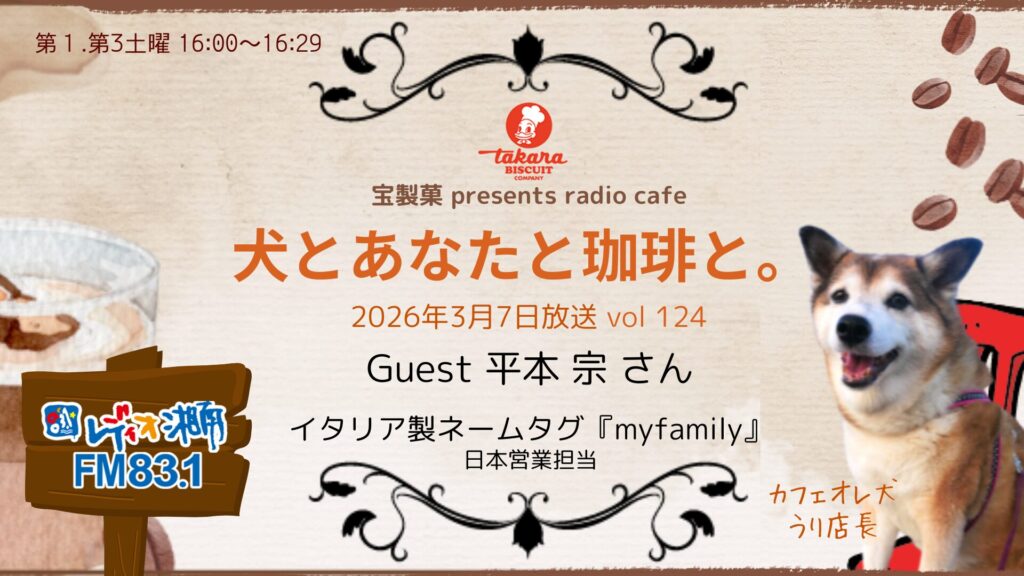宝製菓presents radio café『犬とあなたと珈琲と。』FM83.1MHz レディオ湘南(第1.第3土曜 16:00~16:29)放送