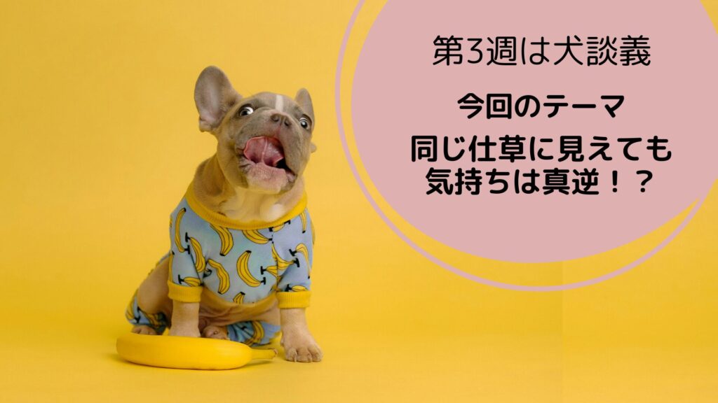 祐子 今日は常連客で保護犬猫のシェルター付きトリミングサロン「イヌと暮らす」のオーナーのゆきちゃんと「同じ行動に見えても、気持ちは真逆?について話をしています。