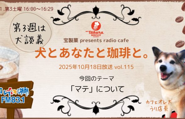 宝製菓presents radio café『犬とあなたと珈琲と。』FM83.1MHz レディオ湘南(第1.第3土曜 16:00~16:29)放送